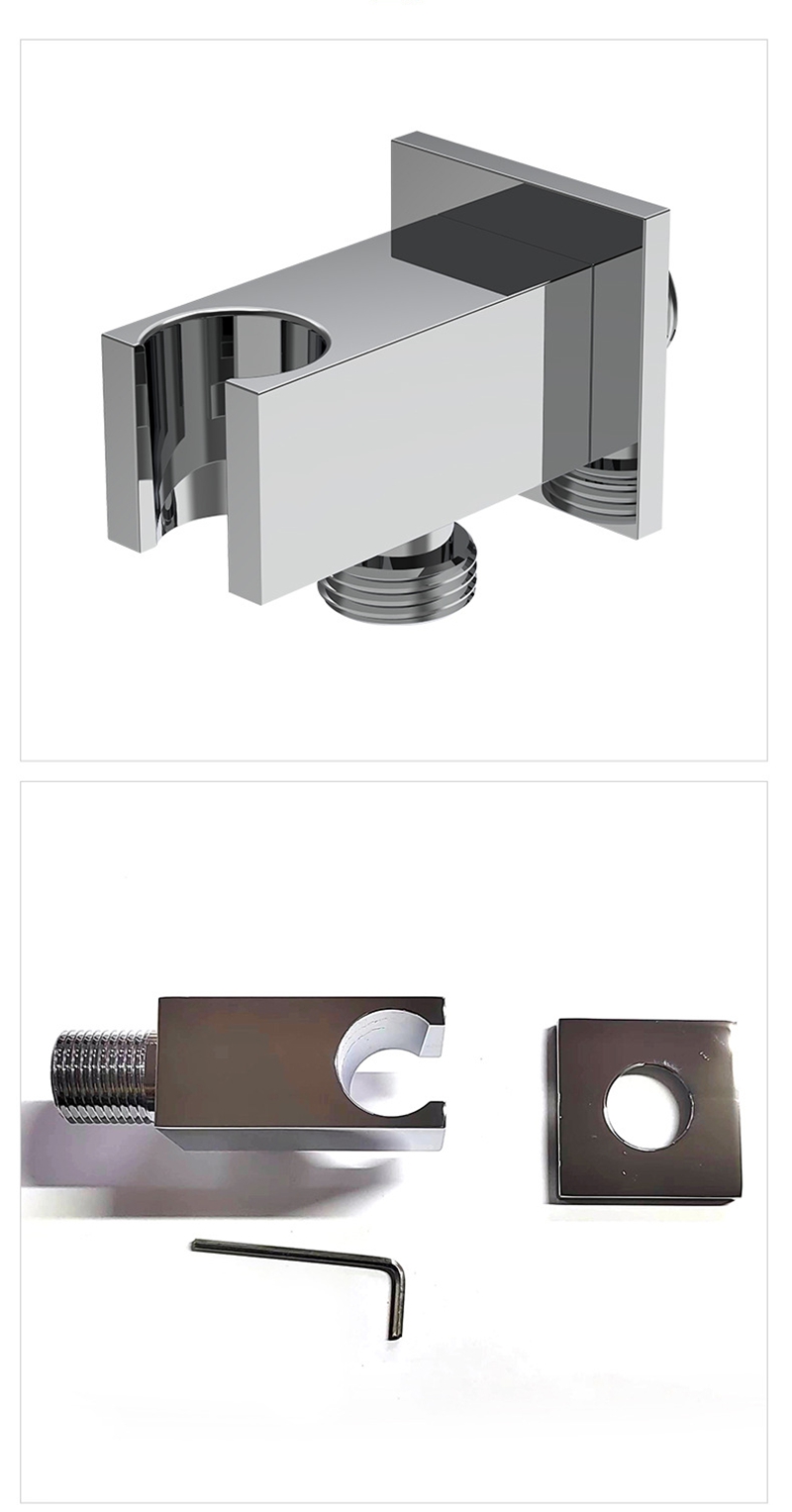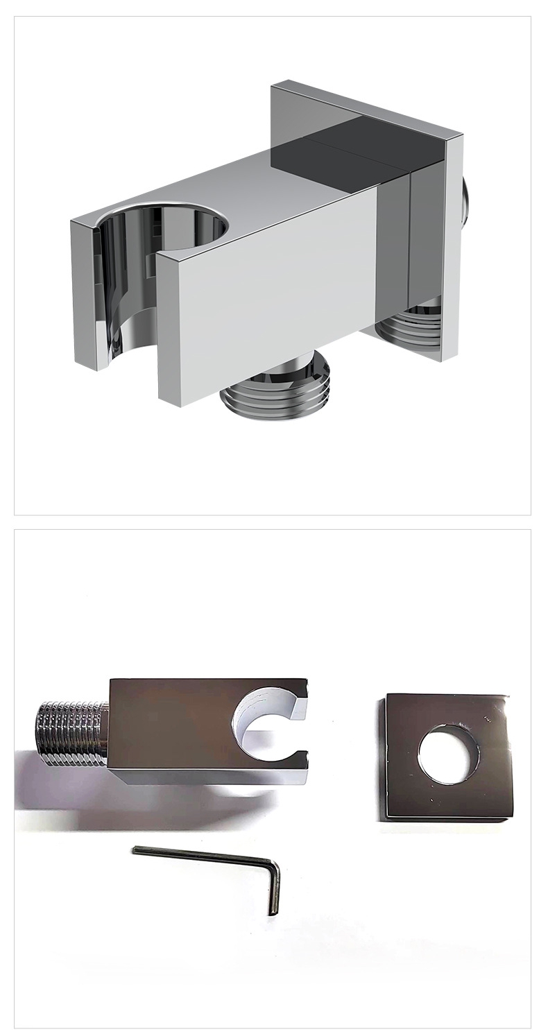 Design & Structure: Boasts a sleek, minimalist square profile with a reinforced U-shaped slot for stable shower head placement, and a standard threaded interface for seamless connection to water supply pipes. The wall-mounted design maximizes space efficiency, keeping the bathroom tidy and organized.
