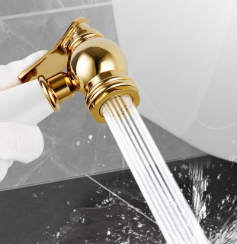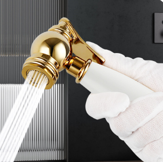 Elegant white ceramic handle with polished gold electroplated finish, classic French retro style, perfect for high-end bathroom decoration, adding a touch of luxury to your space.