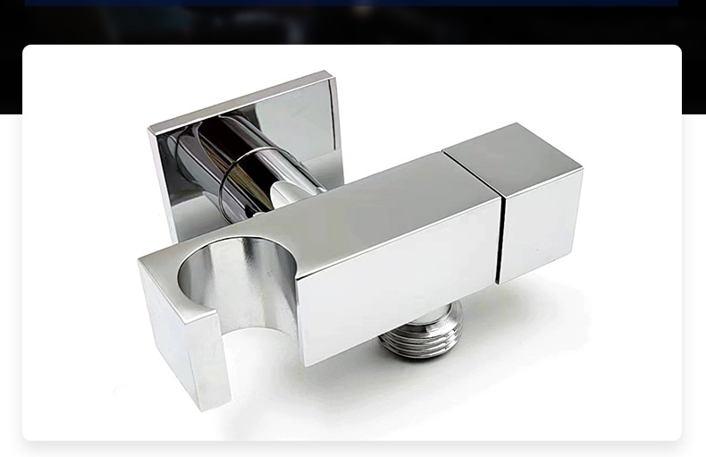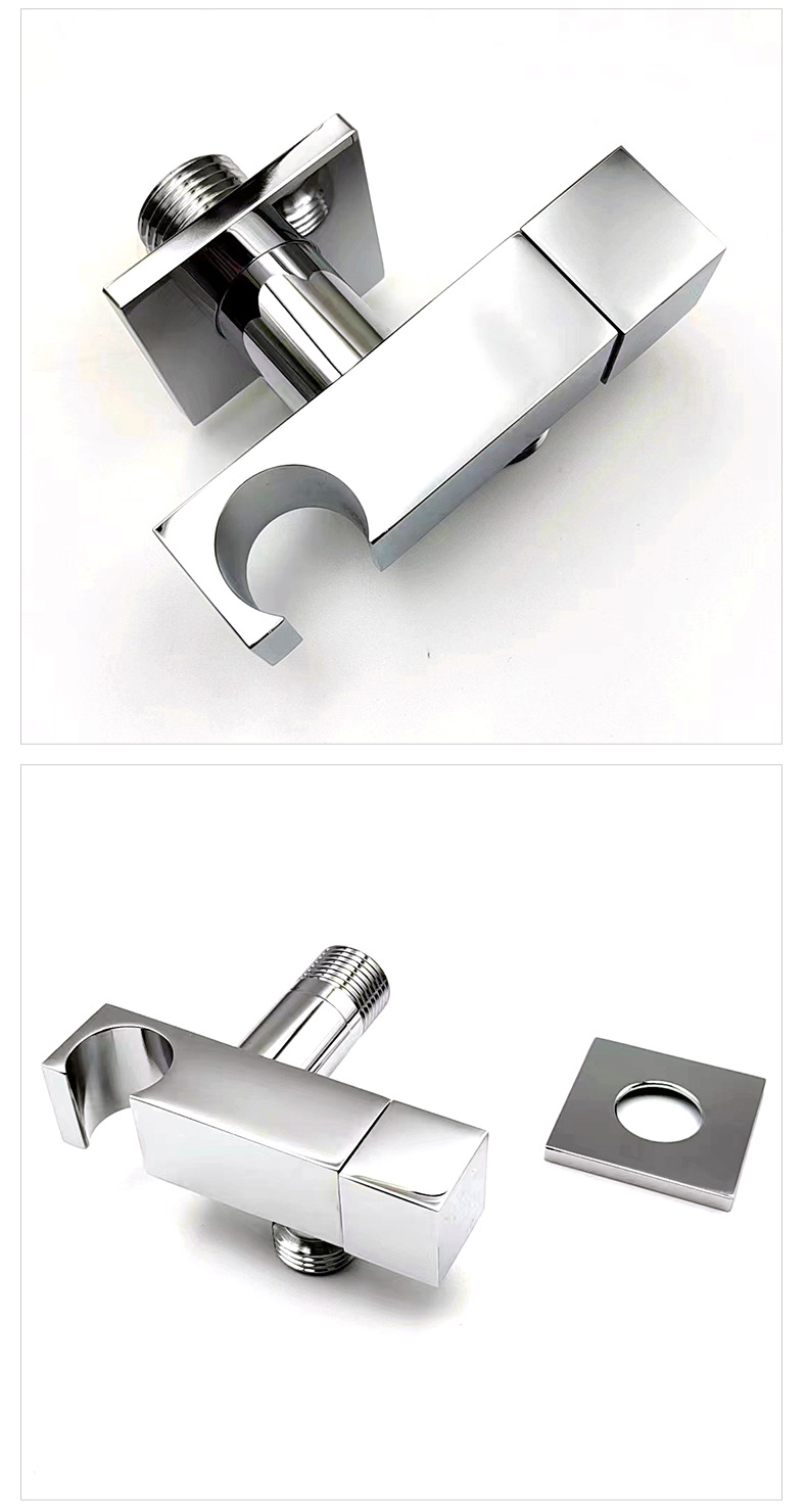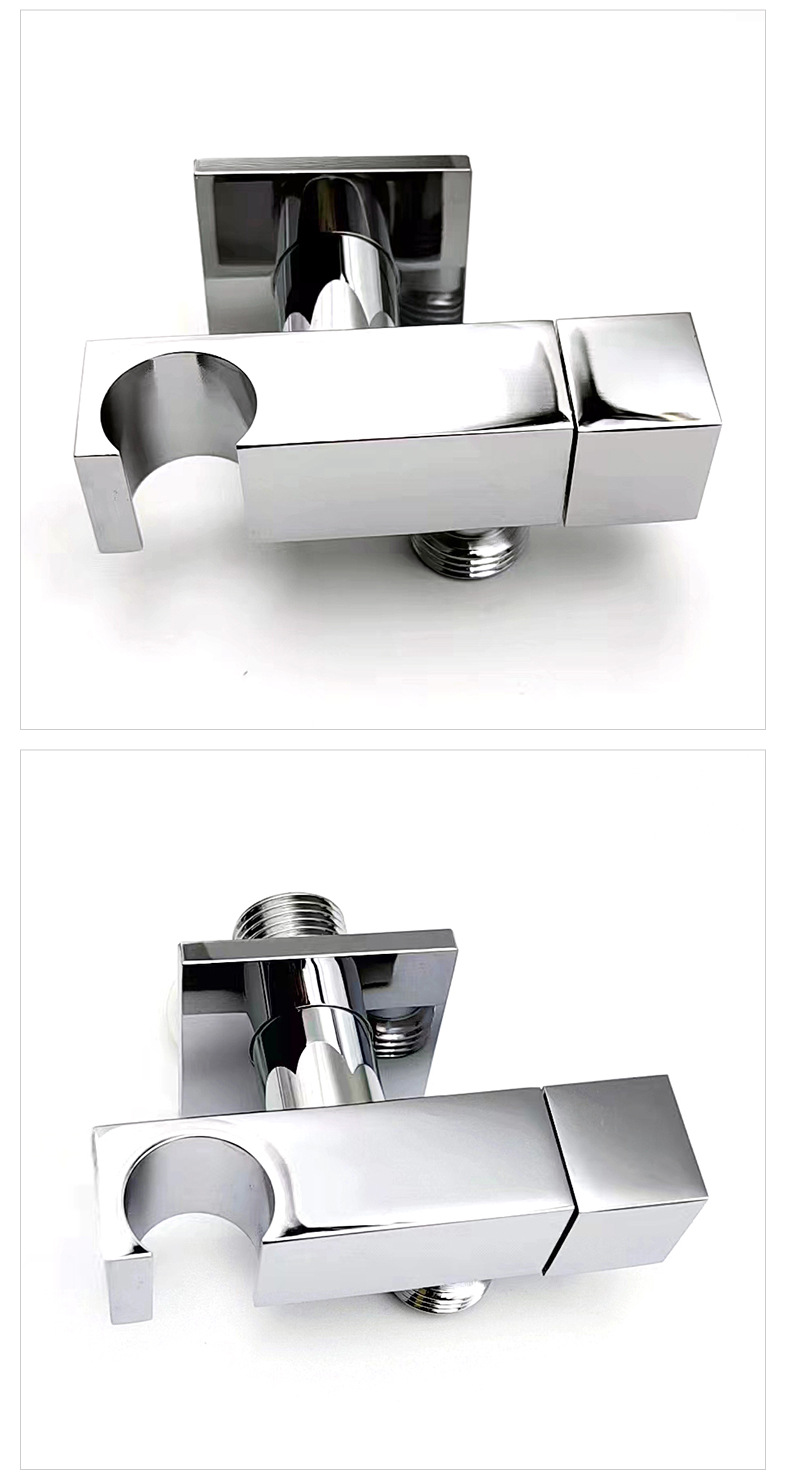 Its core purpose is to provide a sturdy, leak-proof and easy-to-install connection solution for wall-mounted handheld showers. The product adopts a high-purity brass structure: the key force-bearing and water-conveying parts that are in direct contact with water and the wall use premium brass to ensure long-term corrosion resistance, rust resistance and tightness of the connection; The surface of the product is treated by chrome plating and polishing processes, showing a bright chrome appearance, anti-fouling and easy to clean. It is designed with standard thread specifications and a matching decorative cover to fit common handheld shower hoses and wall outlets, simplifying the installation process and ensuring a neat and beautiful installation effect.